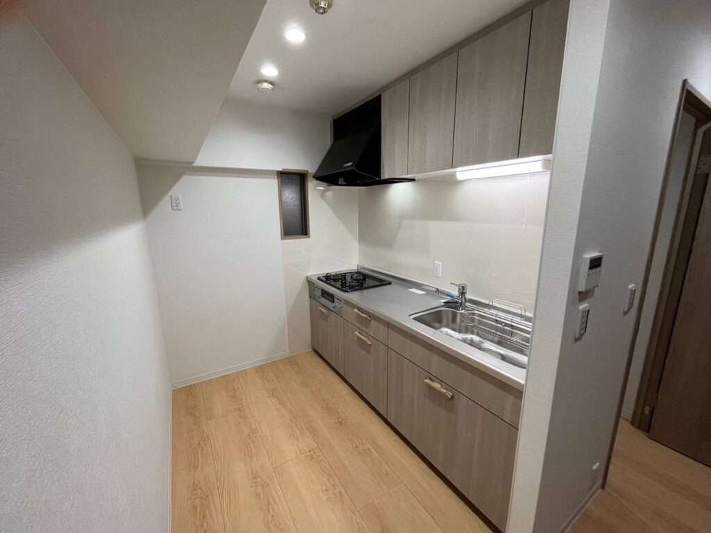 キッチンは総取替し、床も新しくフローリング作業を行いました。